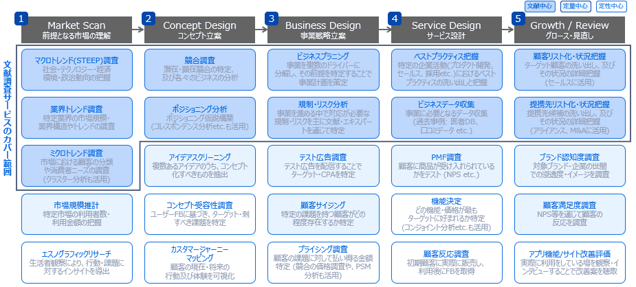 戦略コンサル複数社での国内外リサーチ経験を持つメンバーのノウハウを凝縮しています。